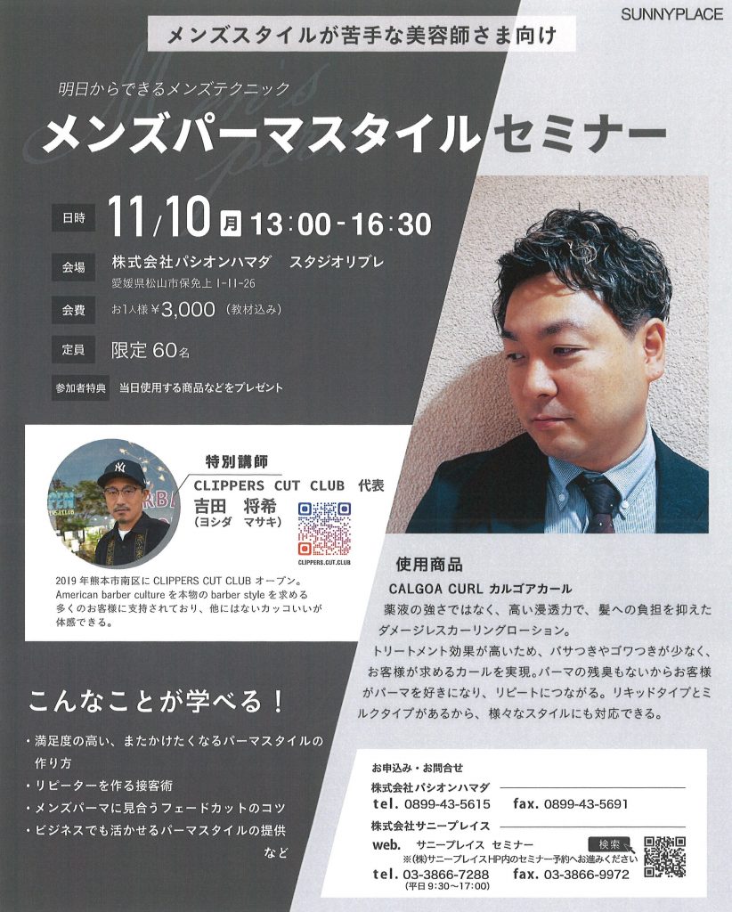 メンズ客を増やしたい美容師さん必見のセミナーです。